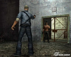 Cash is Doing Time when the Director tells him to take some time in killing Smileys in a bunch of cell blocks using a Hammer and a Metal Bat. Successfully using both weapons to perform Violent and Gruesome kills, Cash is praised by the Director and instructed to head to the end of the cell block in the shower block where a “surprise” awaits him. He goes through many gun wielding Smileys (and perhaps acquires the Shotgun as a reward from the Director if he brought the tower walkway Smiley's head to the Guard Room) on his way there and leaves the decrepit cell blocks as he enters the showers where the Director ominously tells him to go down the rabbit hole.